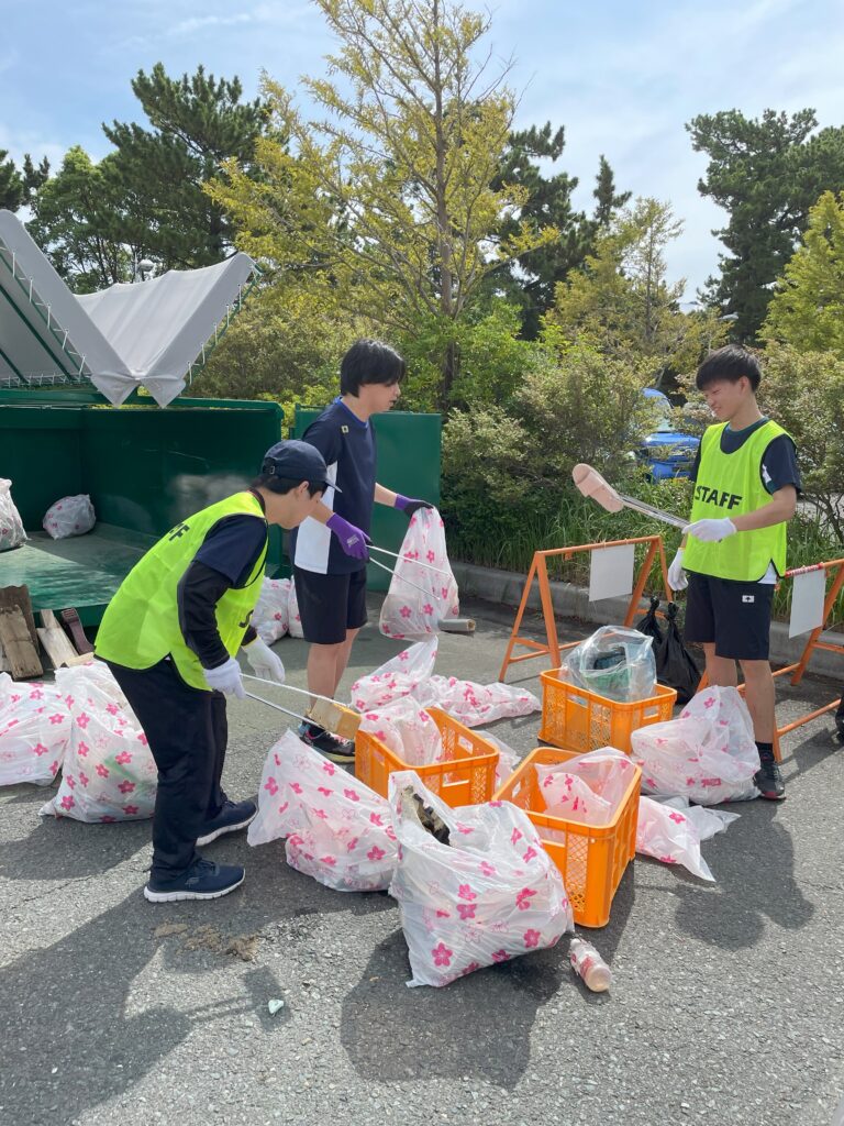 活動では、ペットボトルや缶、発泡スチロールなどさまざまなごみを回収。最後には高校生の皆さんと協力しながら分別作業を行い、集めたごみをコンテナへ投入しました。