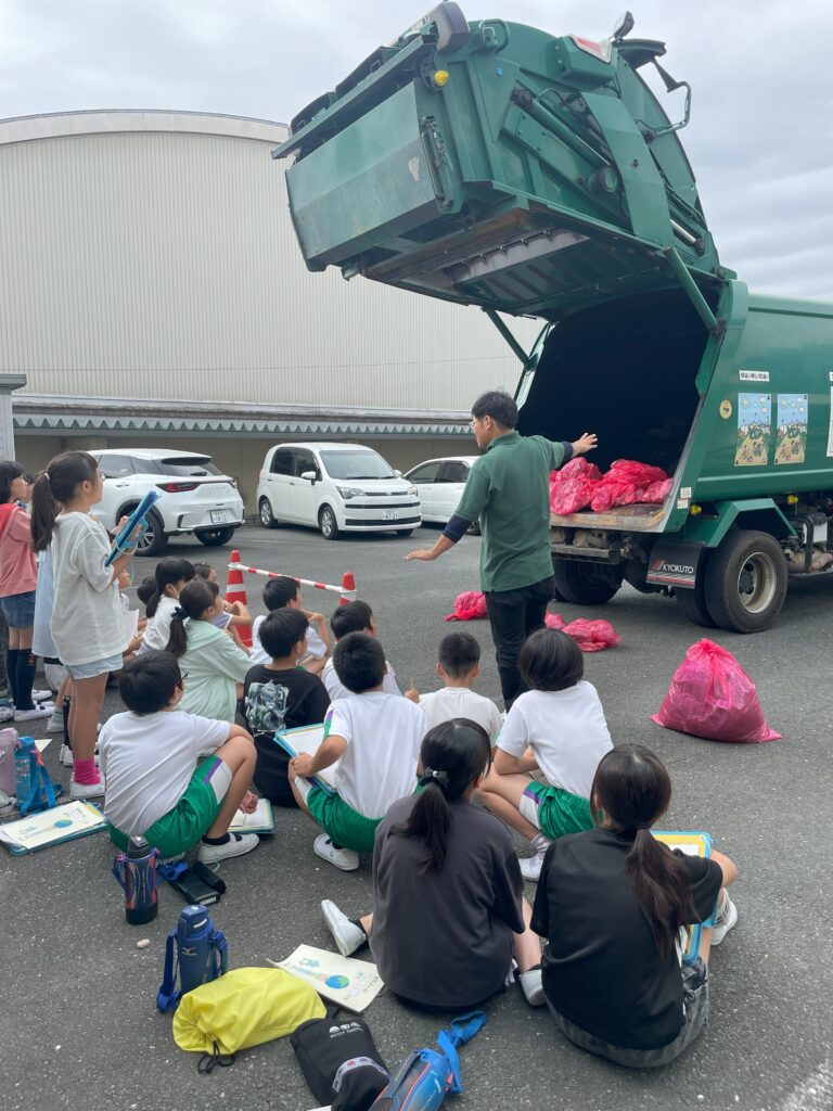 授業では、普段見慣れないパッカー車を実際に観察し、「ごみがどうやって運ばれ、どんな仕組みで処理されるのか」を学びました。