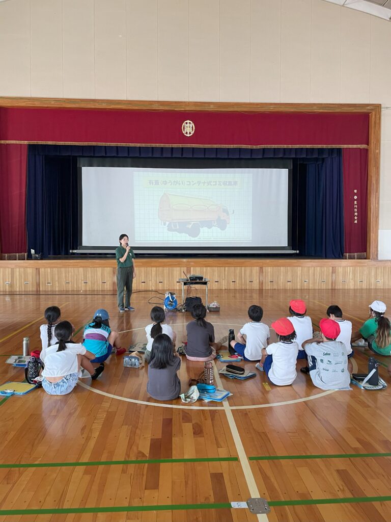 授業では「ごみの分別」や「パッカー車の仕組み」について学び、児童の皆さんはクイズやゲームを通じて楽しみながら環境について理解を深めていました。