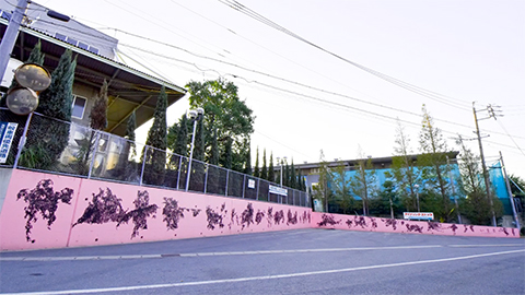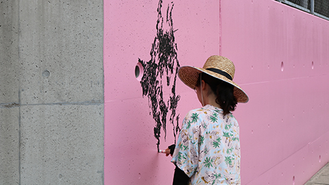大東さんは「同社が扱う廃棄物も地球の循環の一部と捉えれば、変化し続ける“いきもの”と言える。屋外での制作は初めてで、長い壁画は修業のようでしたが、大きなやりがいがありました」と笑顔で語ってくださいました。